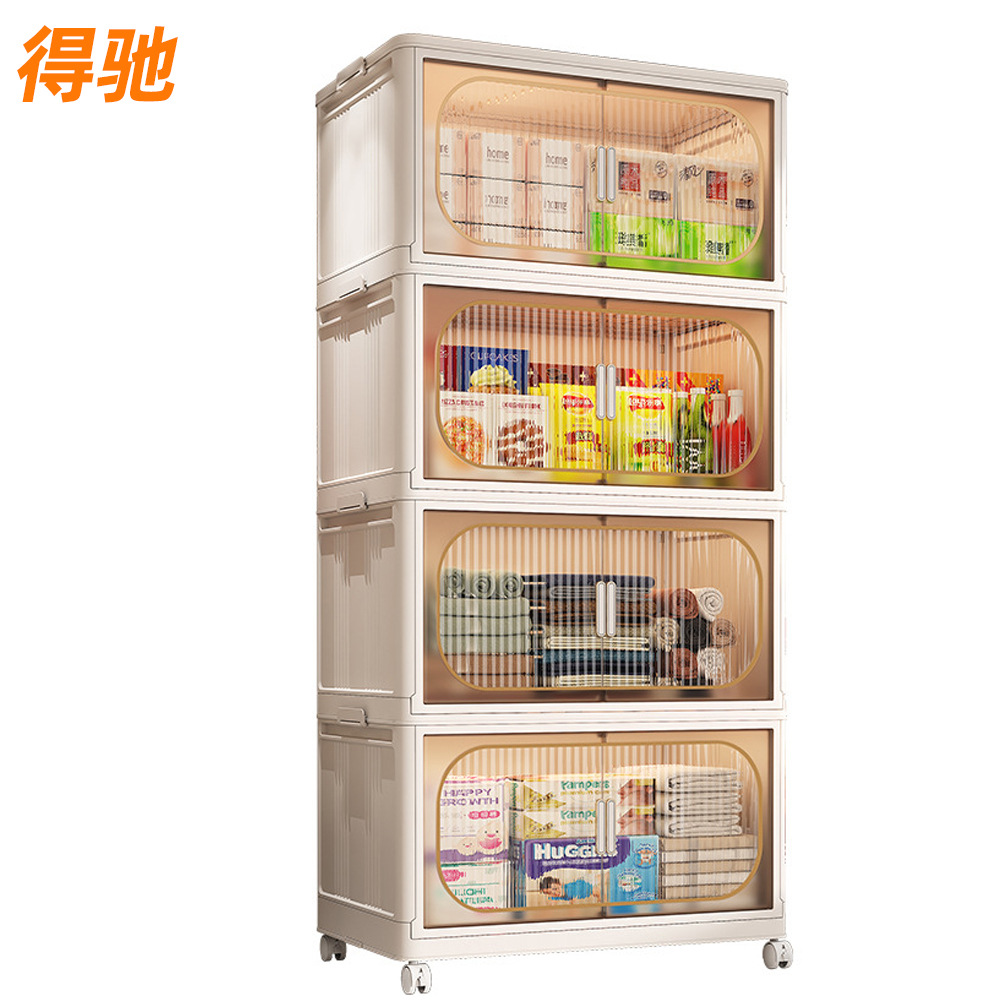24年新型収納棚PP軽豪華ダブルドア折り畳み可能万向輪磁気吸引クリップ寝室たんす折り畳みキャビネット