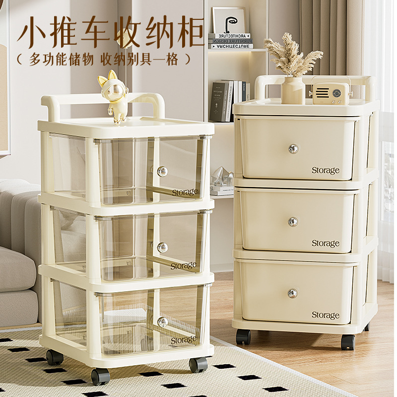 25年新型収納棚家庭用クリーム風底部滑車はPP引き出し式収納棚のロッカーを厚くした