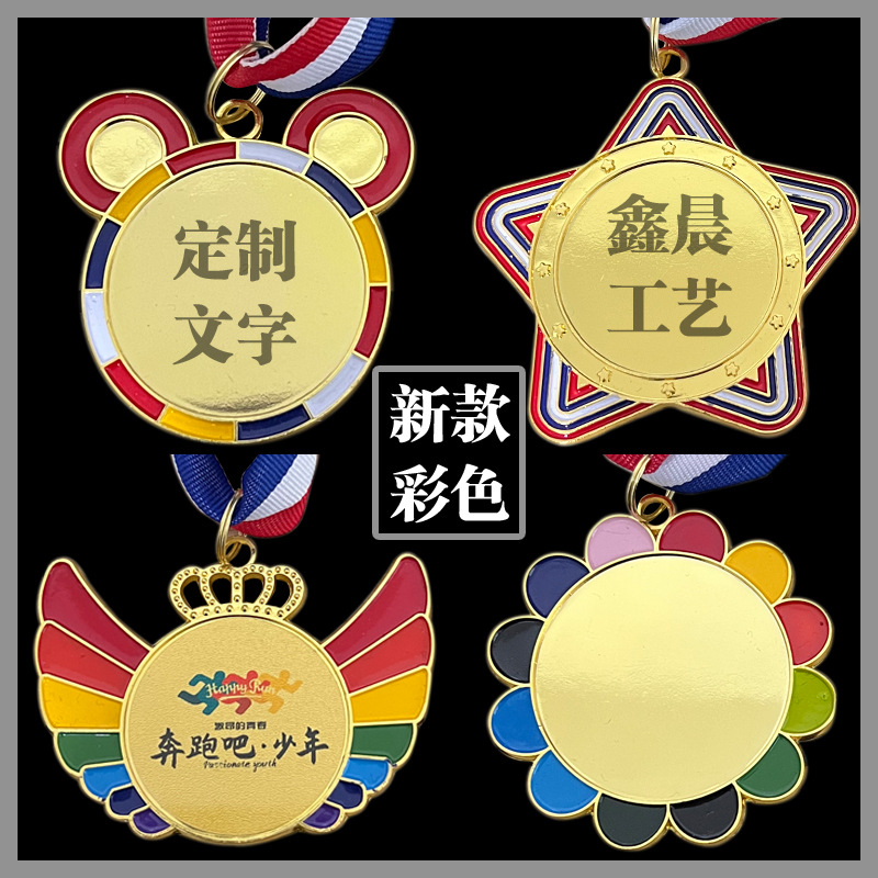 子供のメダルの虹のカラーの星の札の金銀の銅の運動会のメダルの幼稚園のメダルのメダルの印字