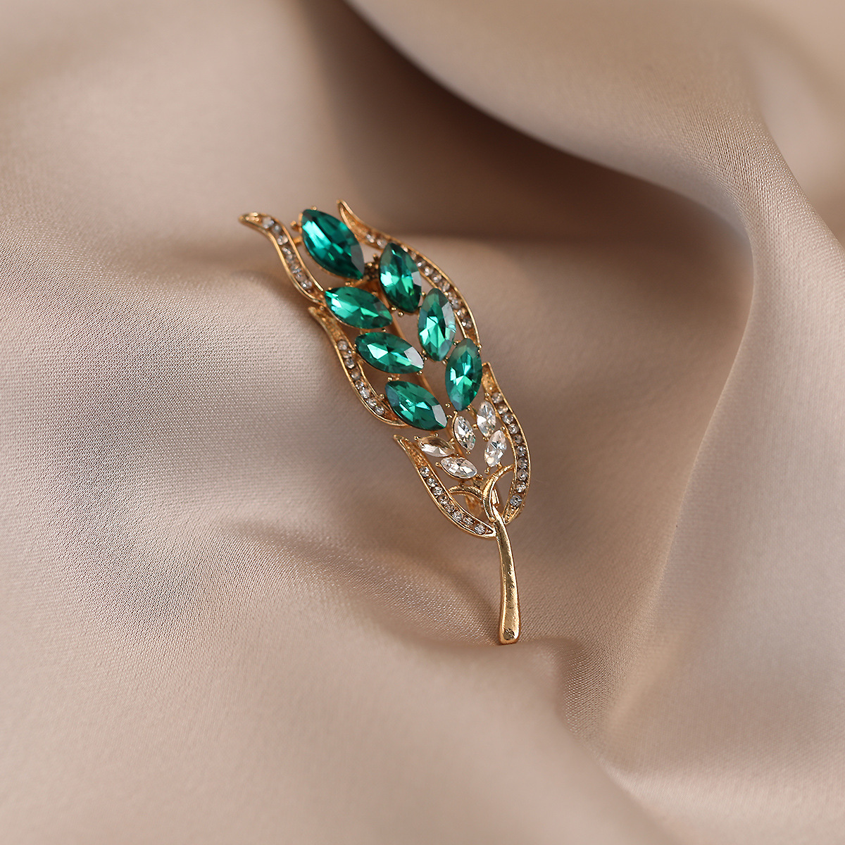ハイエンドの絶妙な小麦の穂ブローチ、ダイヤモンドがちりばめられたカラフルなガラスの小麦の穂の花のブローチ、男性と女性のスーツのコサージュブローチアクセサリー