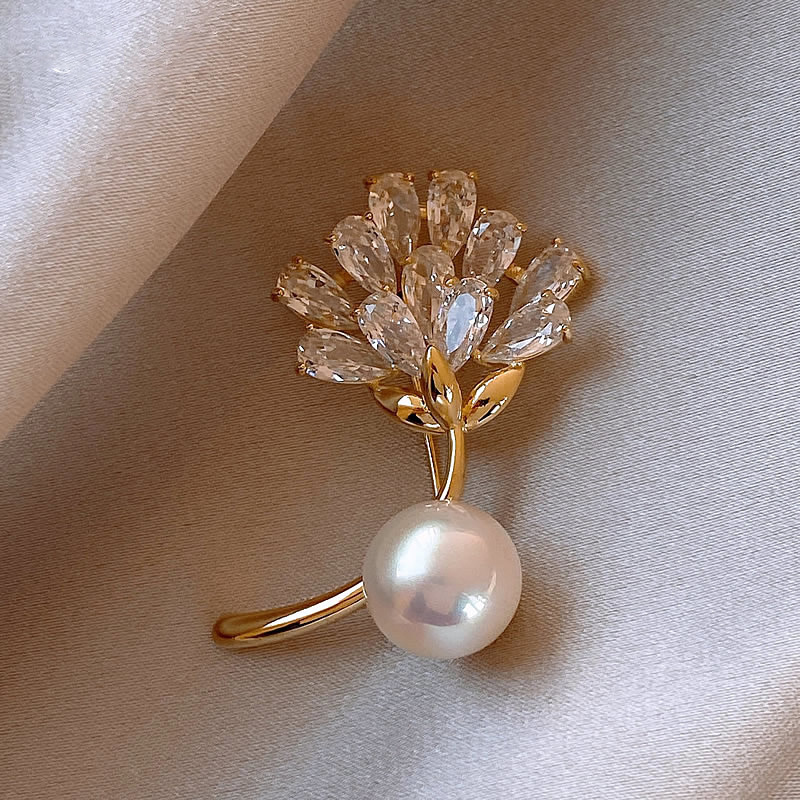 真珠の花のブローチの女性のデザイン感の小さい大衆のスーツの胸の花の秋冬の新型のドリルのコートは襟元のピンを飾ります。