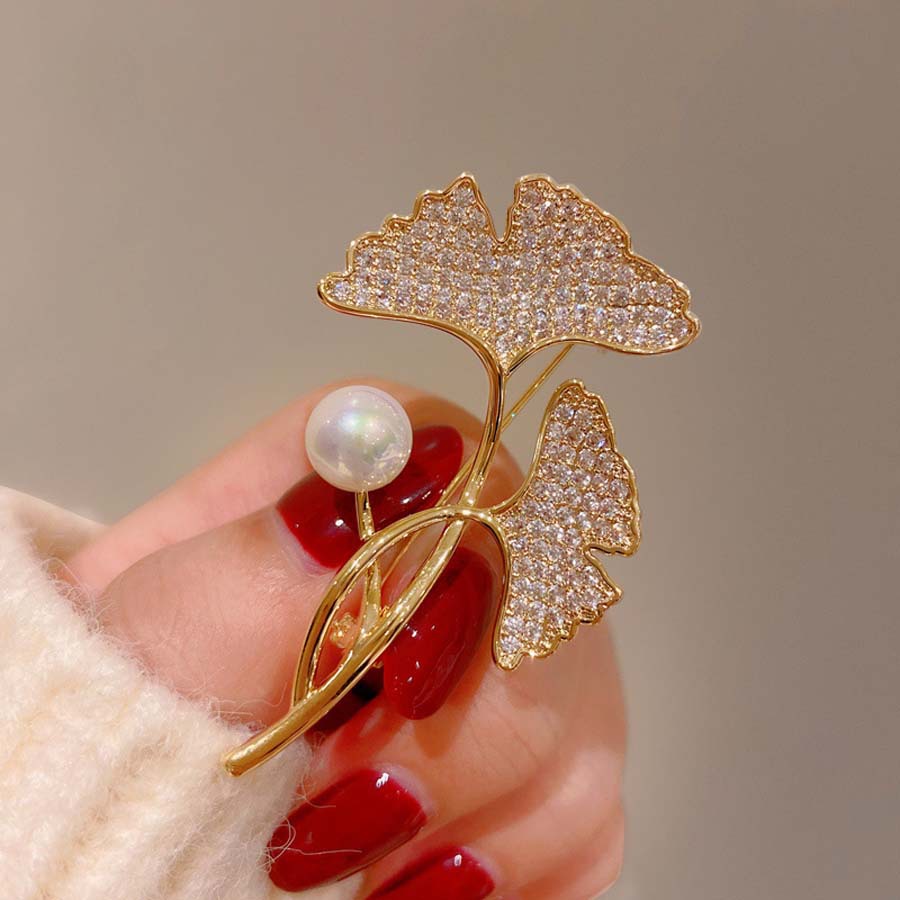 グラデーション水晶緑葉ブローチ高級女性大衆デザイン感樹葉ピン気質胸花服装飾品