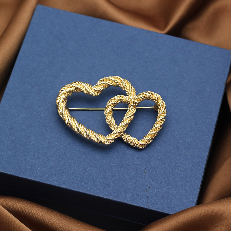 夏のファッションシンプルな心相印ブローチ女性レトロ麻花紐金色愛スーツセーターピン飾り