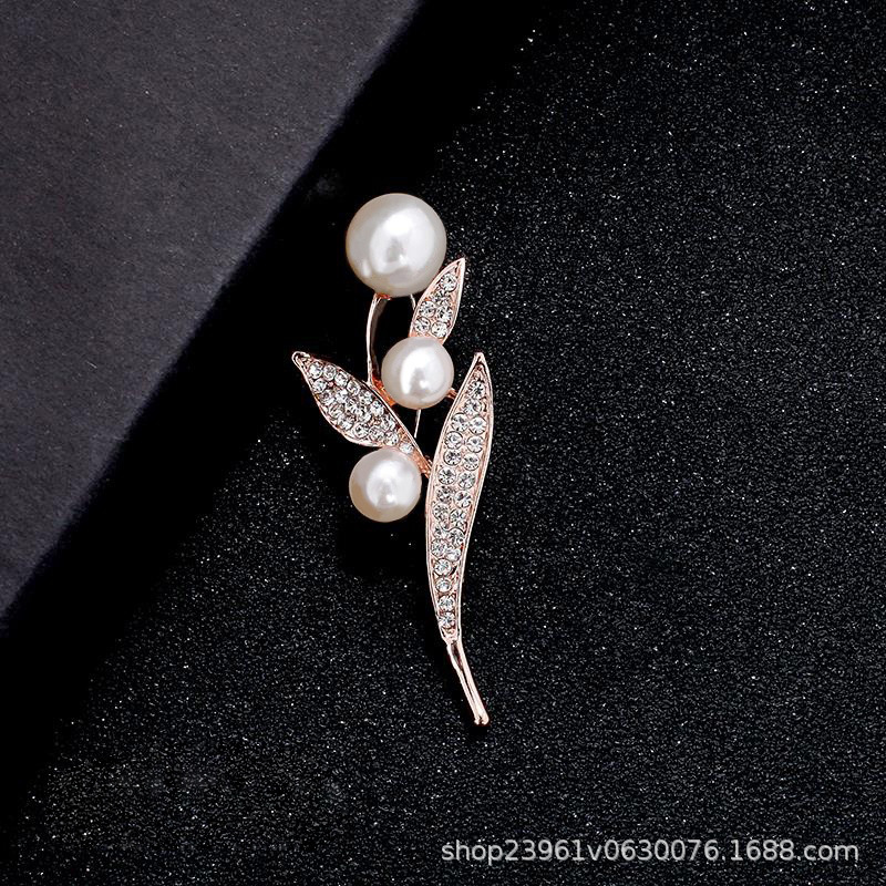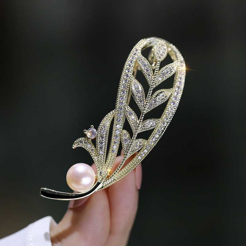 韓国のダイヤモンドの羽のブローチの真珠の大気の葉の胸の花の贈り物のピン