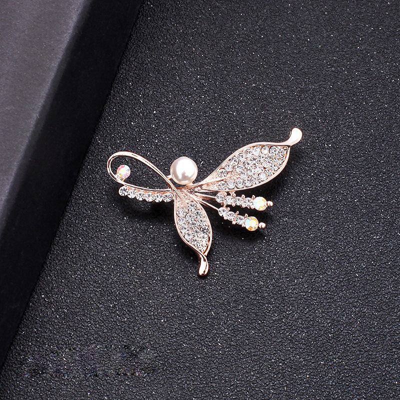 高級で精巧なダイヤモンドの真珠の蝶のブローチの女性の気質の小さい大衆のスーツの胸の花のデザイン感のセーターのピンの装飾