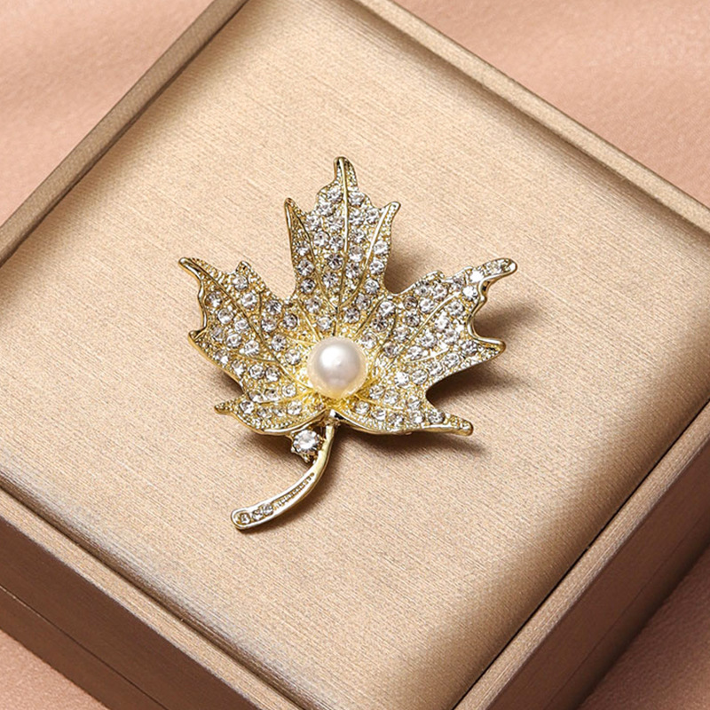 真珠のカエデの葉のブローチの高級な女性の気質の潮の復古のピンの服の装飾