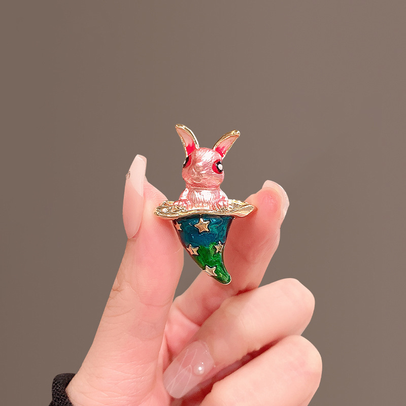 日韓のかわいいアニメのピンクのウサギのマジックの帽子の小さいブローチの気質のピンは光の襟元の圧力の小さいボタンの針を通すことを防ぎます。