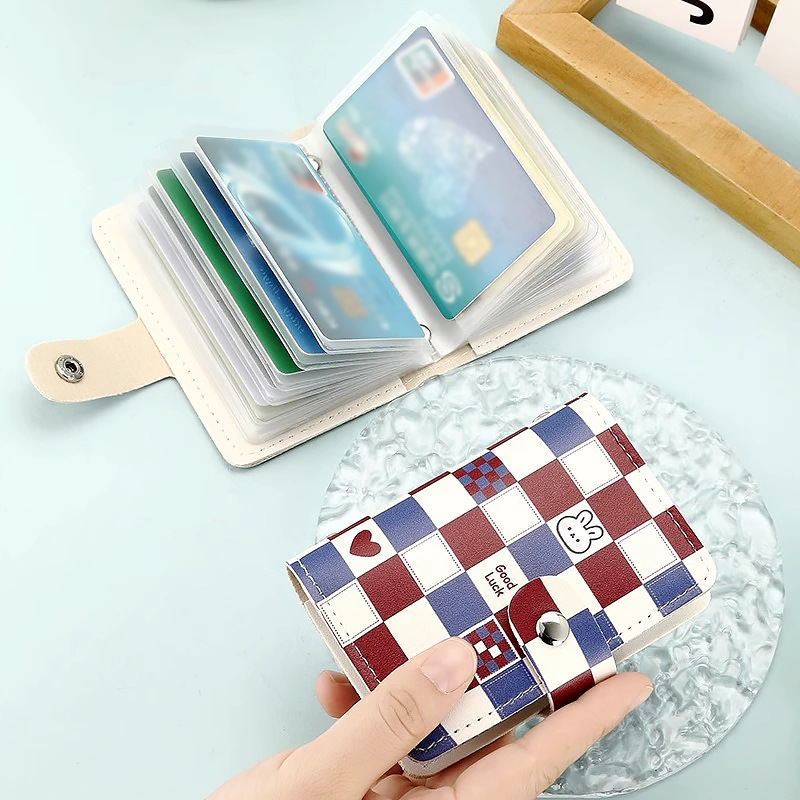 新しいインターネットセレブコンパクト市松模様カードバッグ大容量マルチカードスロットチェック柄運転免許証バッグ学生カードバッグ女性