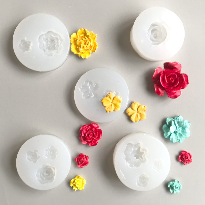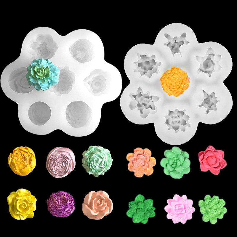 複数の花の形のシリカゲルの鋳型はdiy石膏の香薫のろうそくのケーキを焼きます。