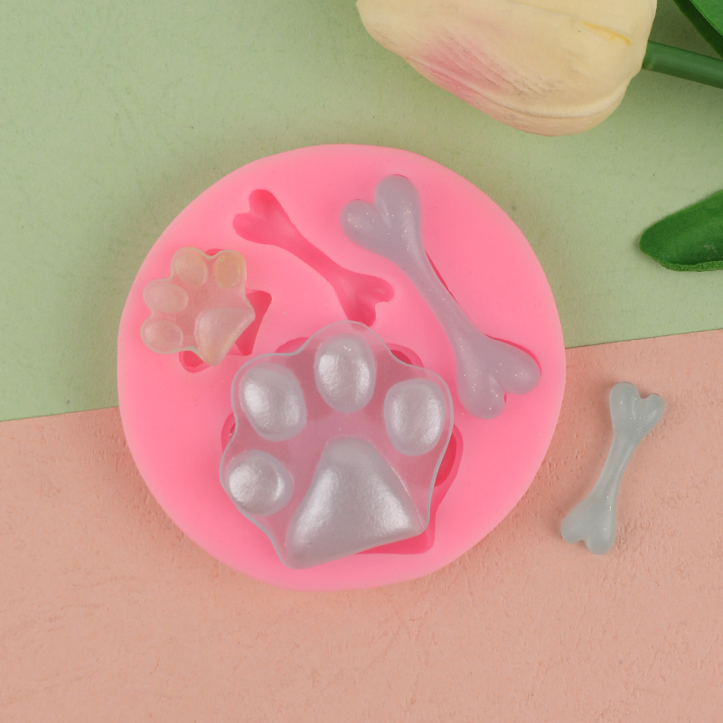 Diy犬の爪の骨のケーキは砂糖をひっくり返して金型の液体のシリカゲルの金型を焼きます。