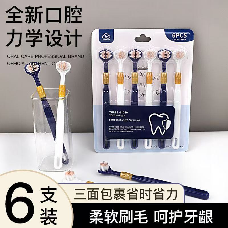 サムピンの交換用三面歯ブラシ、柔らかい毛、家庭用大人用口腔舌クリーニング、カップル用立体三頭歯ブラシ、卸売