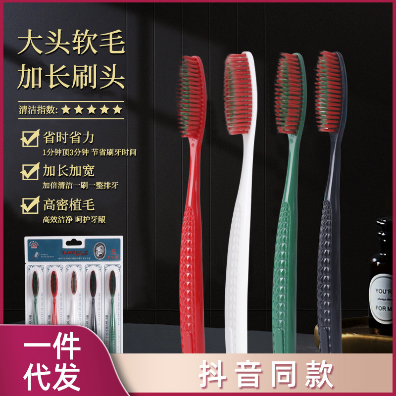 クリエイティブ長頭歯ブラシ5本セット高効率広面清潔省時間5本セット怠け者広頭歯ブラシソフト毛卸売り