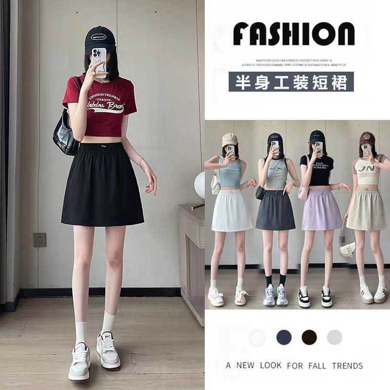 アメリカのレトロな工装スカートa字高腰防光スカート夏の薄いタイプのカジュアルで痩せた太もものスカート