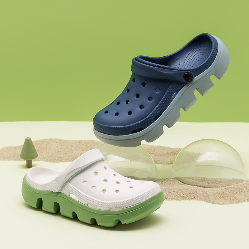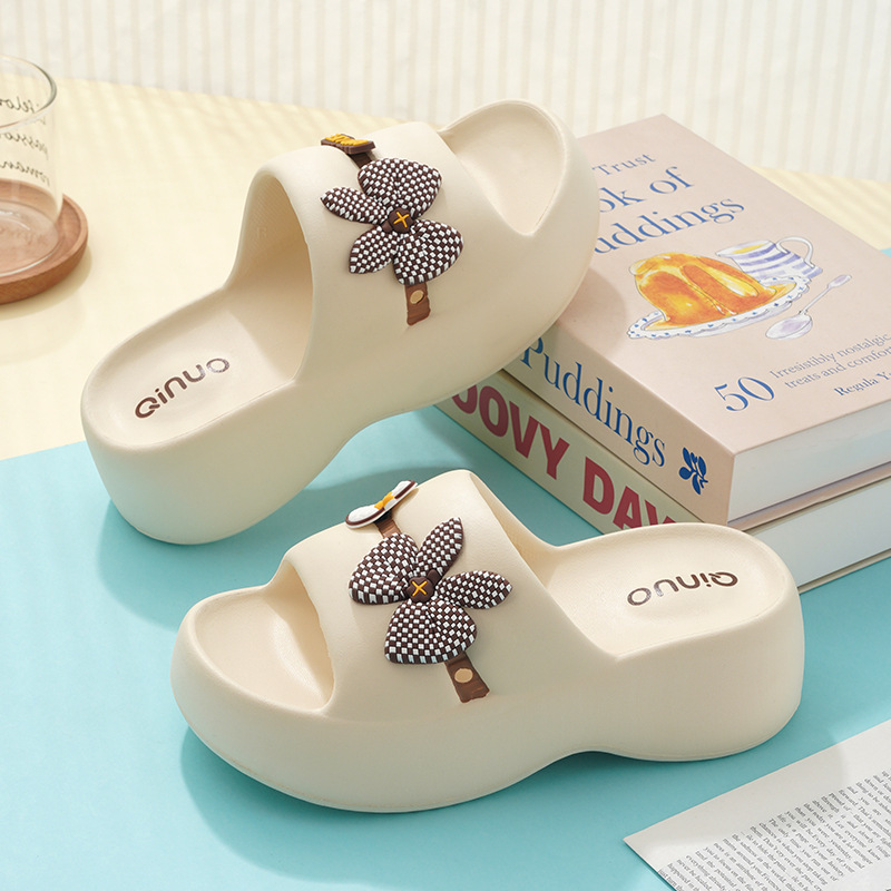 EVA厚い底の穴の靴が高くなります。女性は夏にスリッパを履いて糞感を踏んでいます。