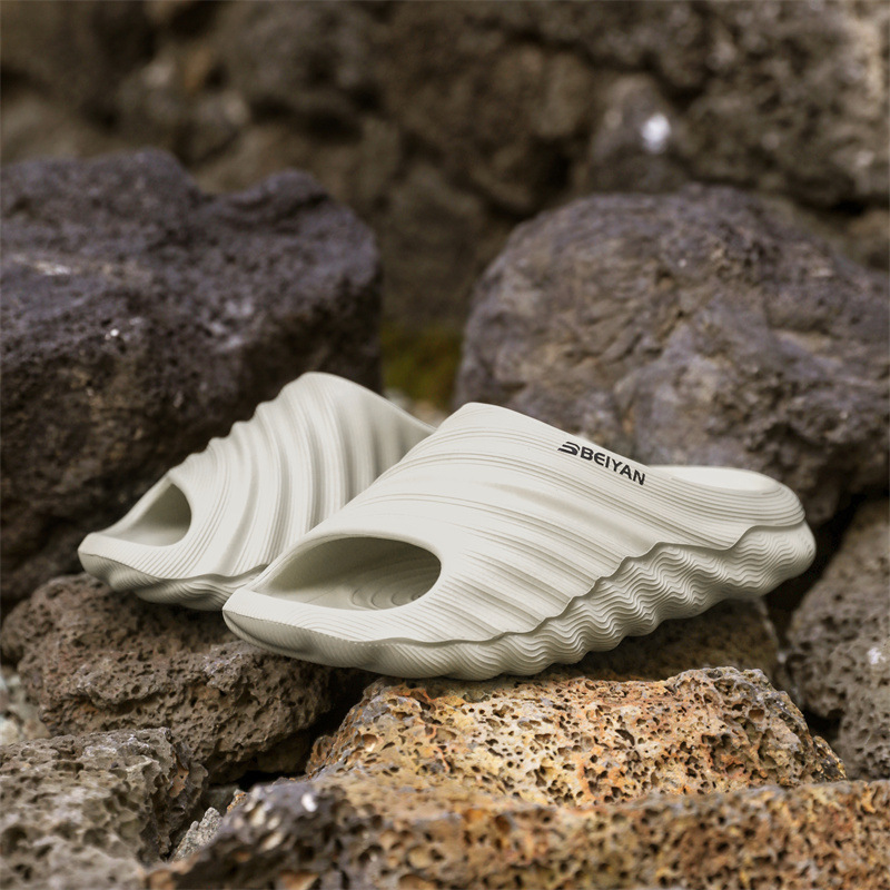 2025夏の新型ファッションの厚い底のさざ波の屋外のスポーツのスリッパは家の外で男女の純色の1字のスリッパを着ます。