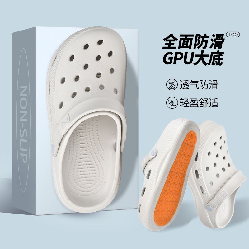 夏の新型の穴の靴の男性の滑り止めの通気性のカジュアルな厚い底の外は柔らかい底の包頭の冷たいスリッパのメーカーの卸売りを着ます。