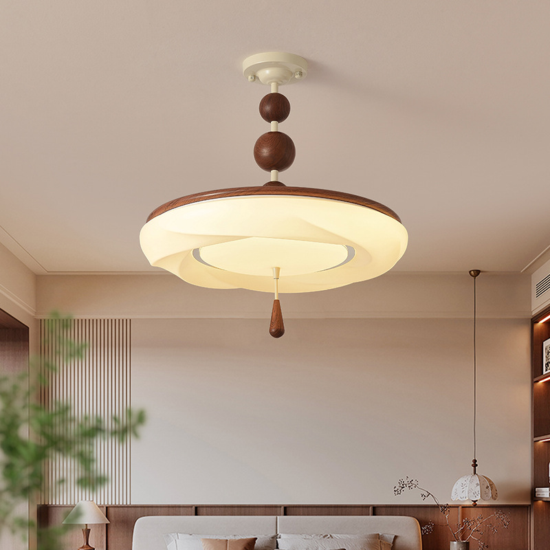 寝室ランプ中世わびさびスタイルクリエイティブラウンドフラワーリビングルームルームランプレトロウォールナットカラー目の保護シーリングランプ