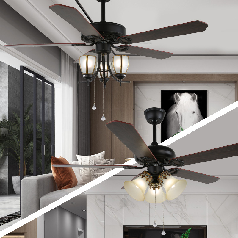 レトロなアメリカのシャンデリアライト家庭用静音大風力レストラン寝室シンプルなリビングルーム一体扇風機付きシャンデリア