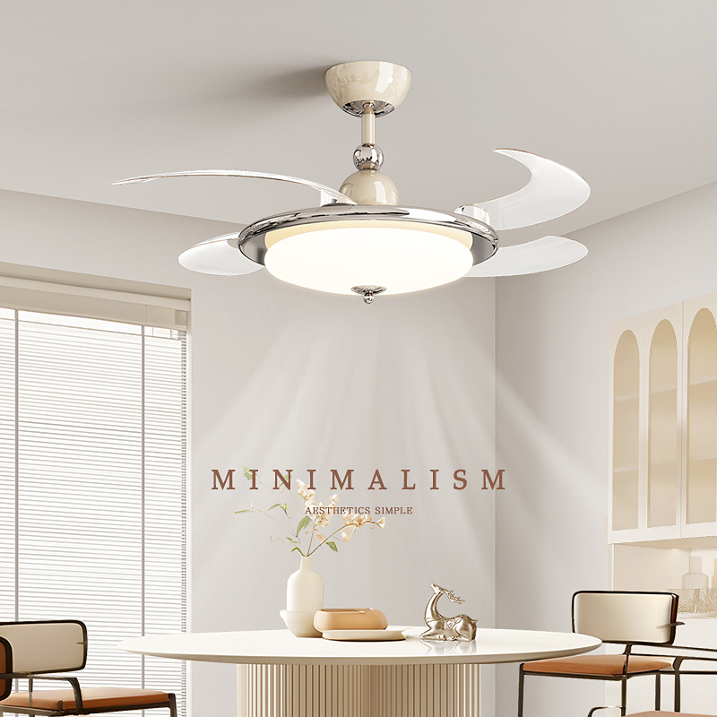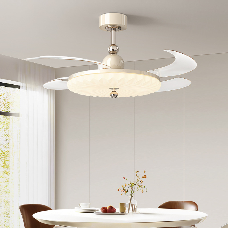 中古クリームスタイルインビジブルファンライトフルスペクトルサイレント可変周波数寝室シーリングファンライトレストランライトファン一体型ライト