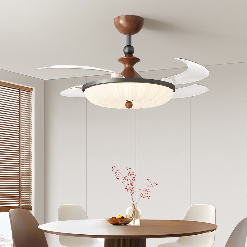 フルスペクトルサイレントファン一体型ランプレストランファンランプウォールナットカラー中古クリームスタイルシーリングファンランプ寝室ランプ