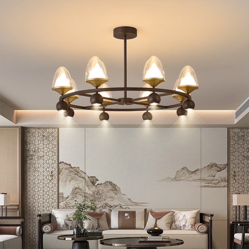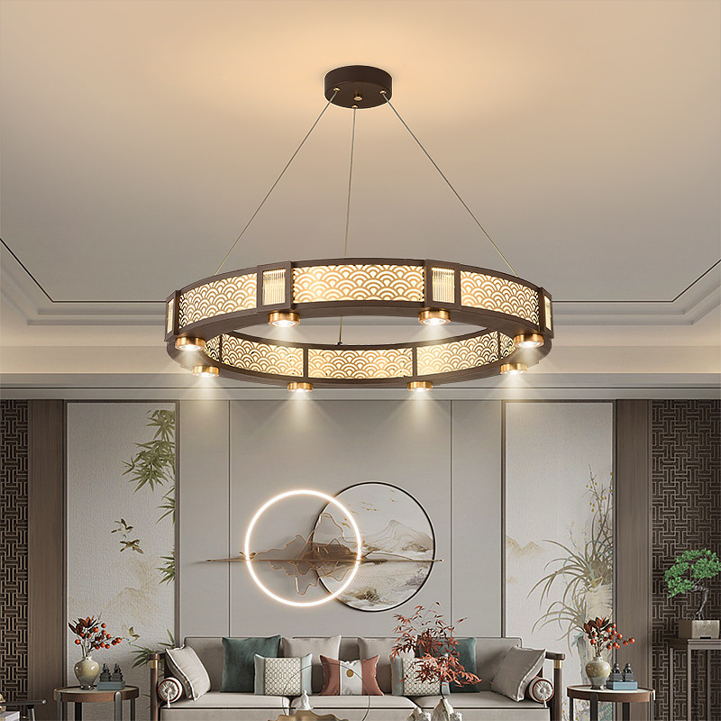 2024新型新中国式円形客間シャンデリアシンプルな中国風ホテルのトランクレストランにはスポットライト付きのスタンドがついている