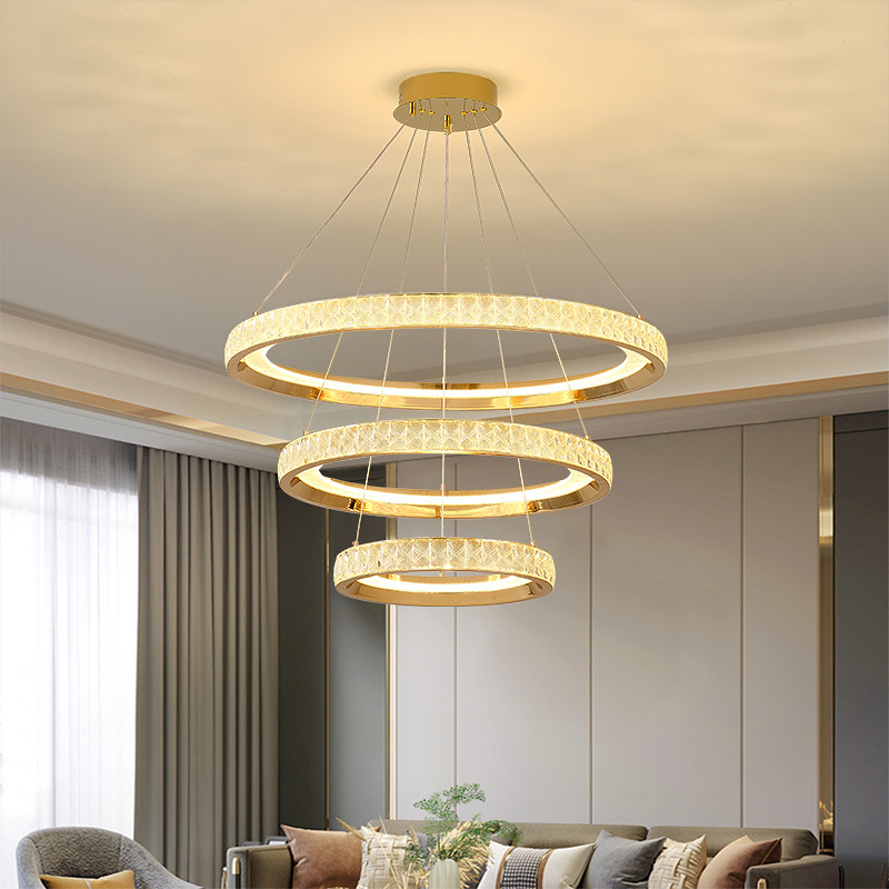 円のシャンデリアの軽い豪華な水晶の明かりの環状の客間のレストランの明かりのloftの複式の階段のシンプルな現代のLEDのシャンデリア