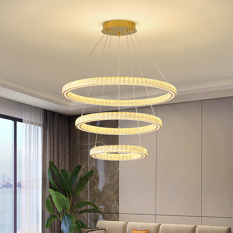 リビングのシャンデリア現代のシンプルなデザイナーの極めてシンプルな円環の組み合わせの個性的な創意北欧レストランのカウンター電気スタンド2024