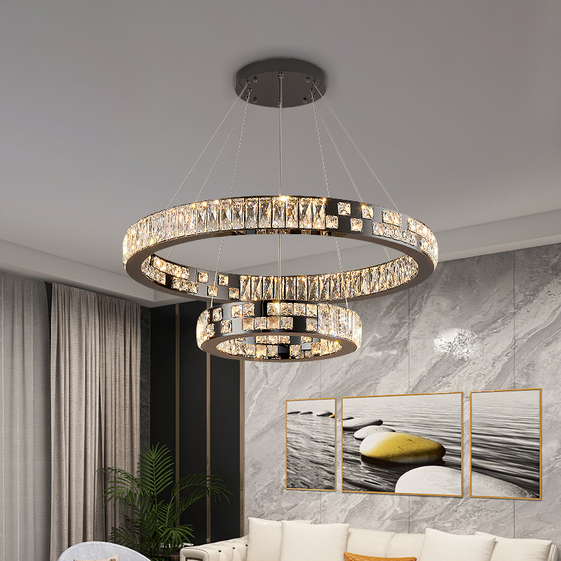 軽豪華ステンレス水晶客間主灯現代シンプル大気創意個性円形レストランシャンデリア2024項