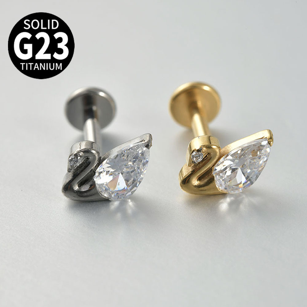 国境を越えて人気g23チタン水滴ジルコン唇釘が洗練された白鳥耳釘気質唇釘耳釘穿刺
