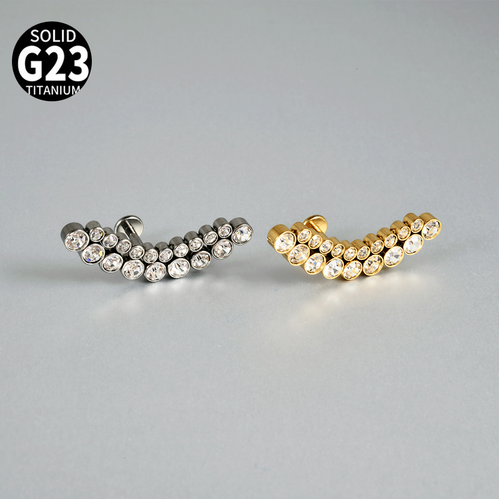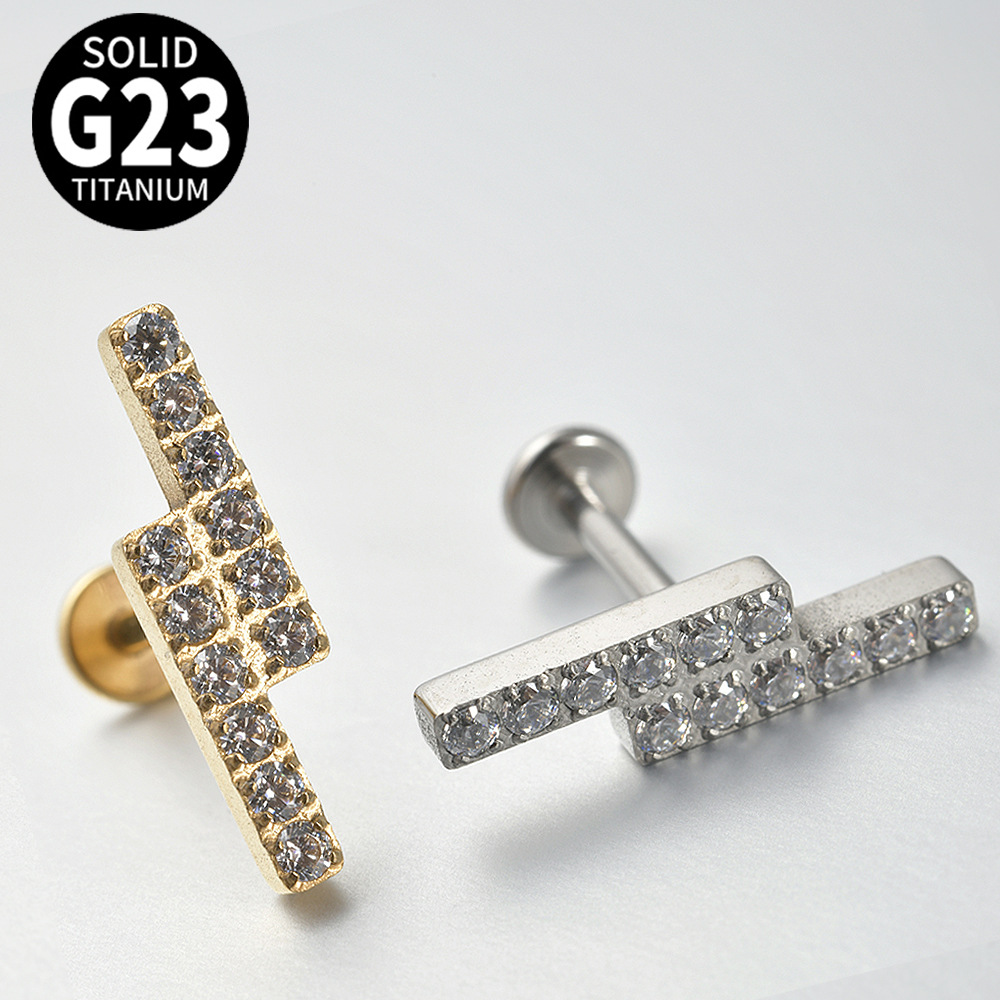 F136/g23チタン合金ピアスメッキ長条稲妻リップピン内ねじ複数個ジルコン気質耳骨釘