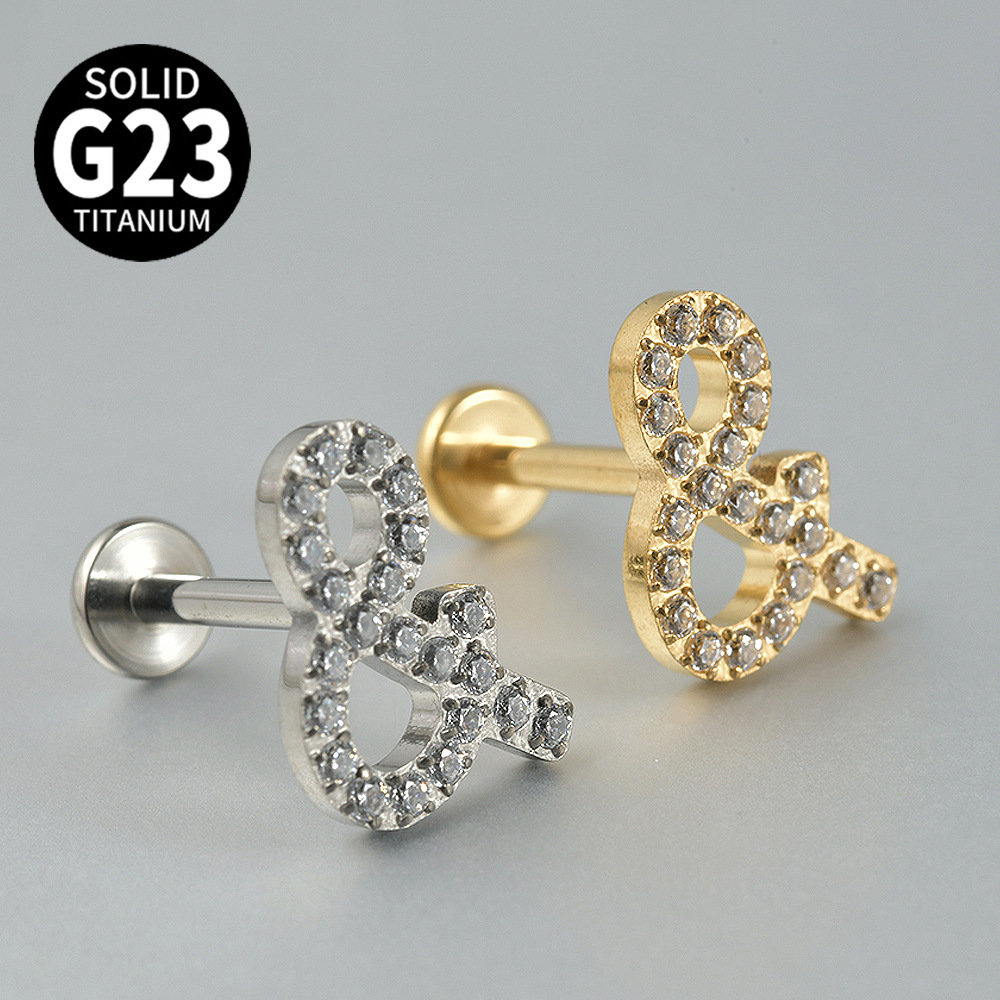 クロスボーダーg23チタン角型ジルコンピアス四叶草ジルコン気质リップピアスシンプルボディピアスジュエリー