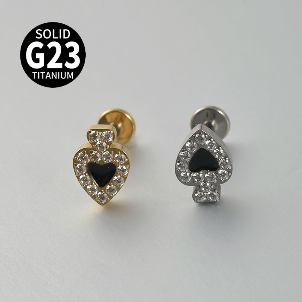クロスボーダー新品g23チタントランプブラック桃心ジルコンピアスチタン合金気質リップスティックピアスボディピアス