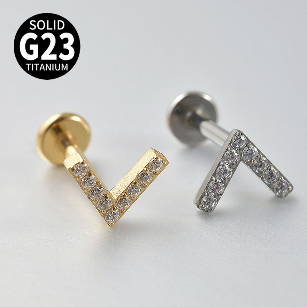 クロスボーダーg23チタンシンプルなジルコンピアス文字v字型気質ピアスソフトピアス高級感ピアス