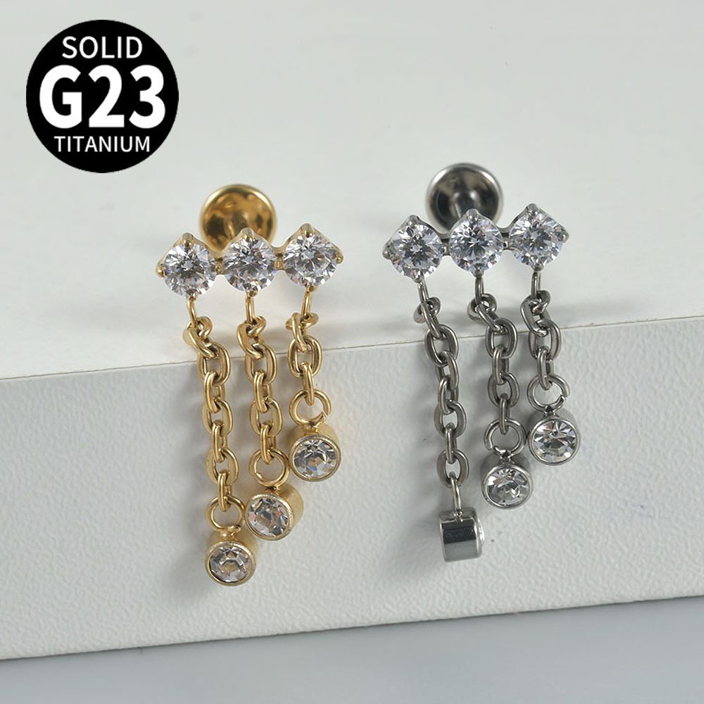 クロスボーダー G23 チタン 3 ジルコン ワンライン チェーン リップ ネイル ペンダント リップ ネイル タッセル リップ ネイル 耳骨ネイル ピアス リップ リング