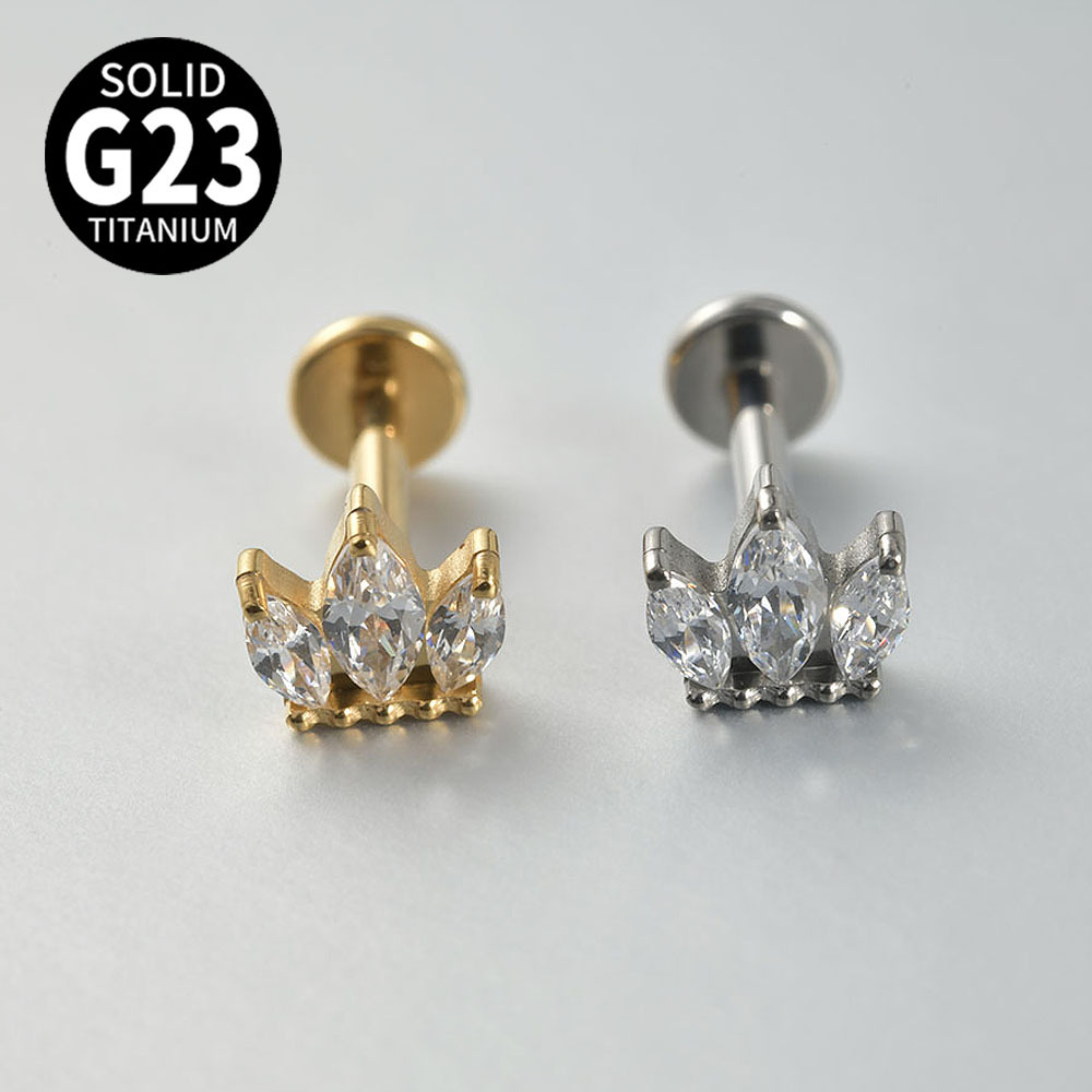 クロスボーダーg23チタン気質台形ジルコン唇釘新商品内ねじ穿刺唇環精致王女王冠ピアス
