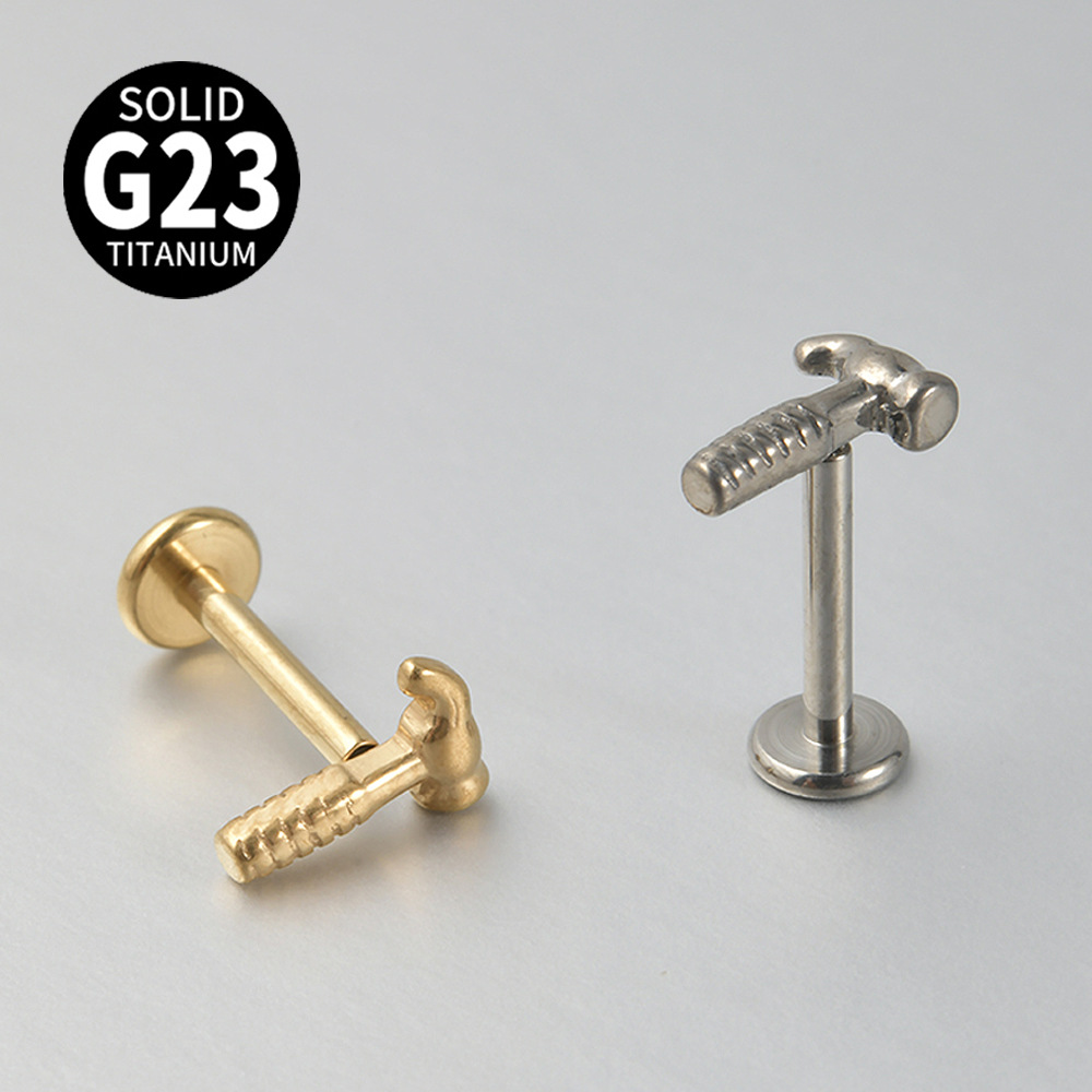 クロスボーダーg23チタン個性ピアスパンクメッキハンマー形リップピアス内ねじボディピアスアクセサリー