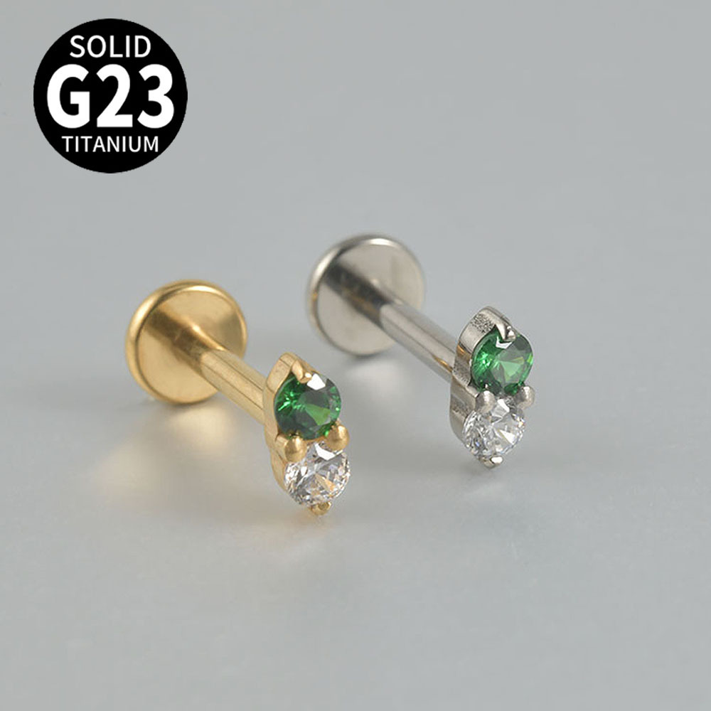 G23チタン馬眼ジルコンピアス三角透かし彫り花唇釘f136チタン合金雌ねじボディ穿刺