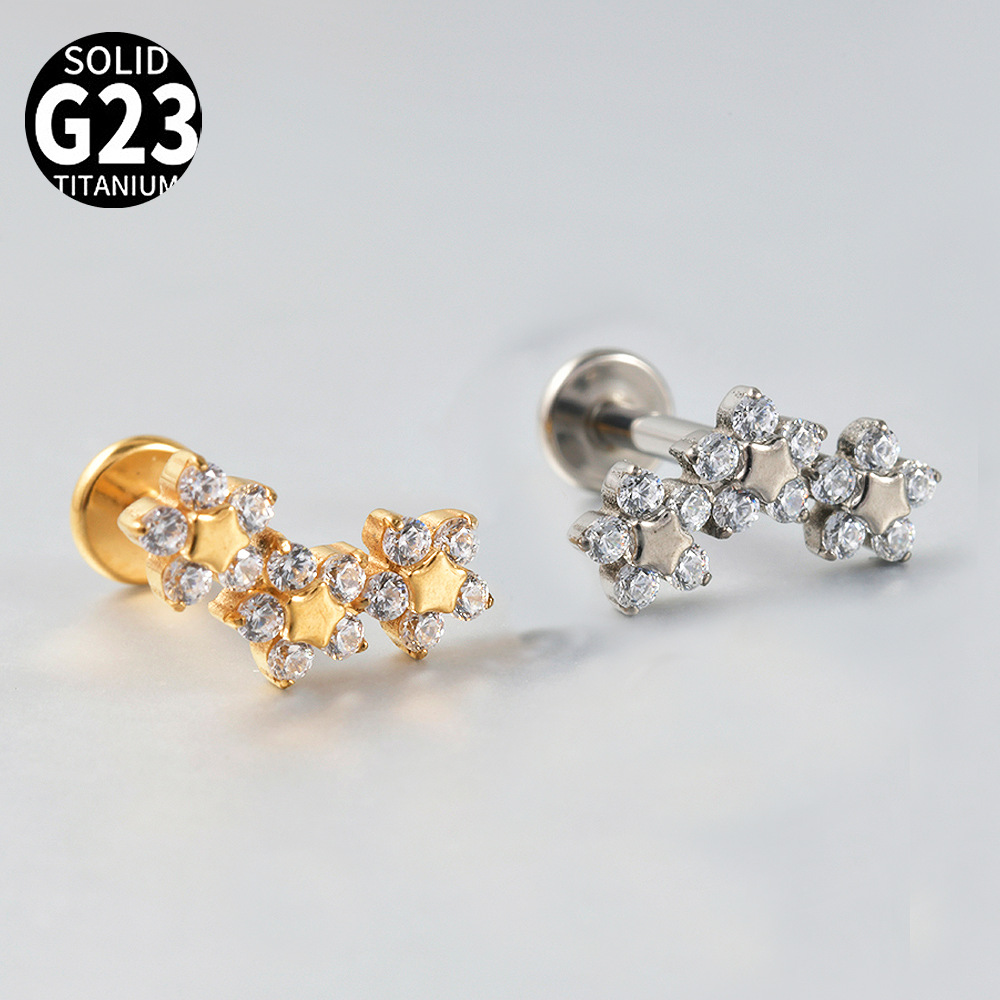 クロスボーダーg 23チタンファッションピアス内ねじ五角海星唇中釘個性シンプル人体穿刺耳骨釘