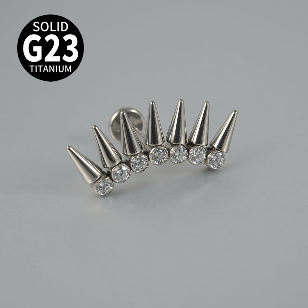 クロスボーダーg23チタンジルコン唇釘個性7つのジルコン尖錐唇環内ねじまつげ弧形ピアス穿刺
