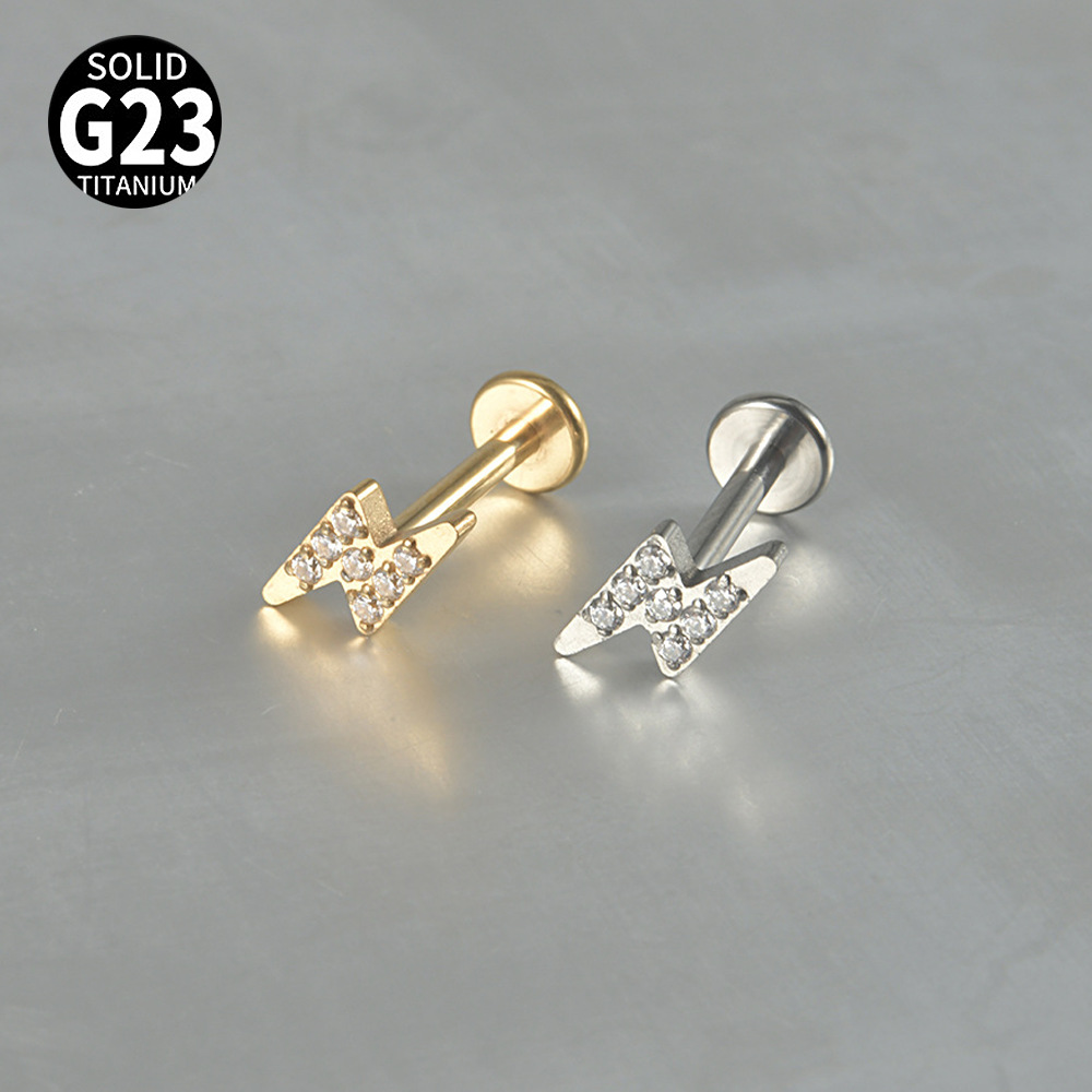 クロスボーダー新品g23チタン稲妻ホワイトジルコニウム内歯リップピン個性パンク風新品めねじストレートロッド耳骨釘