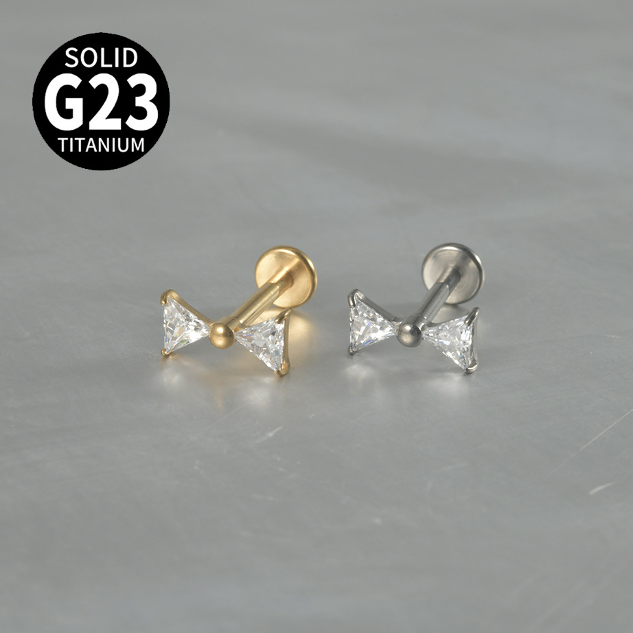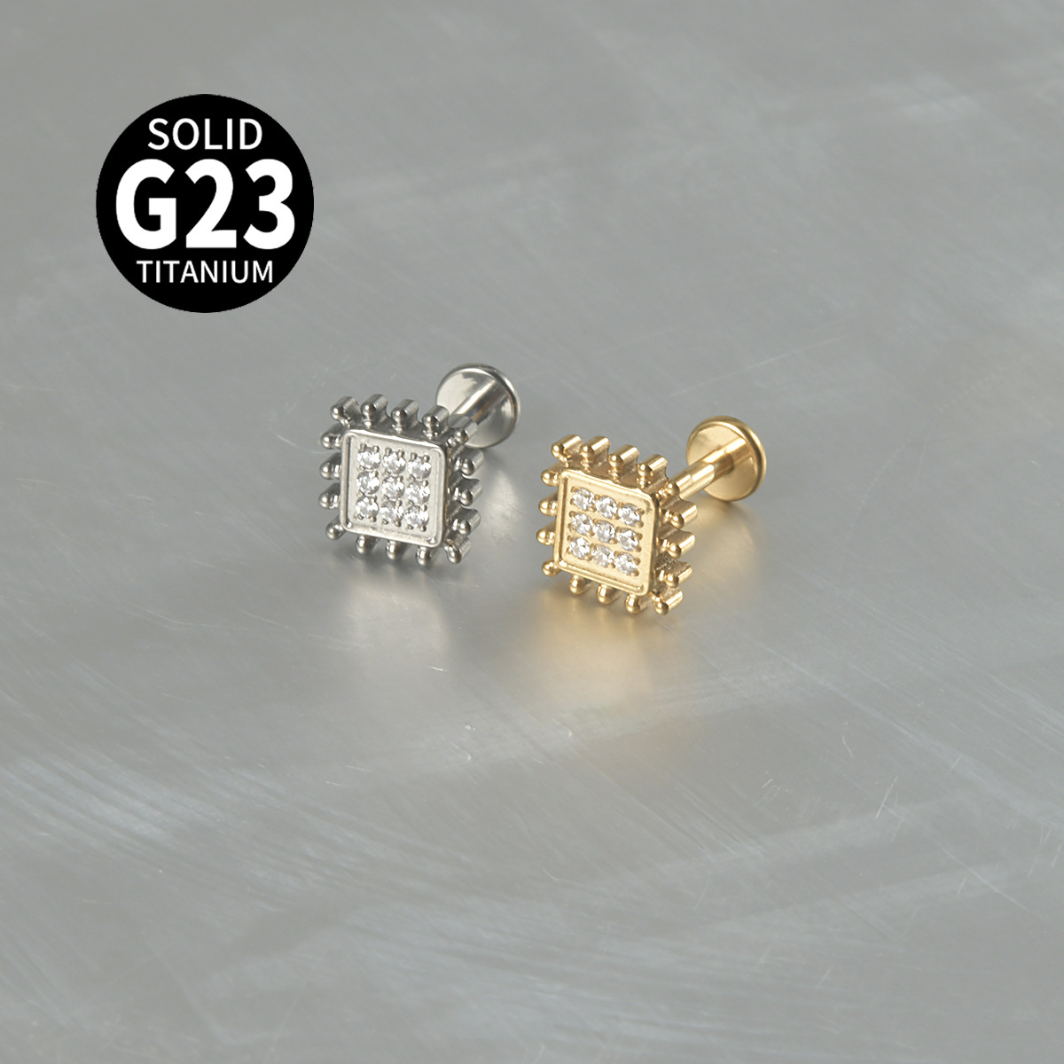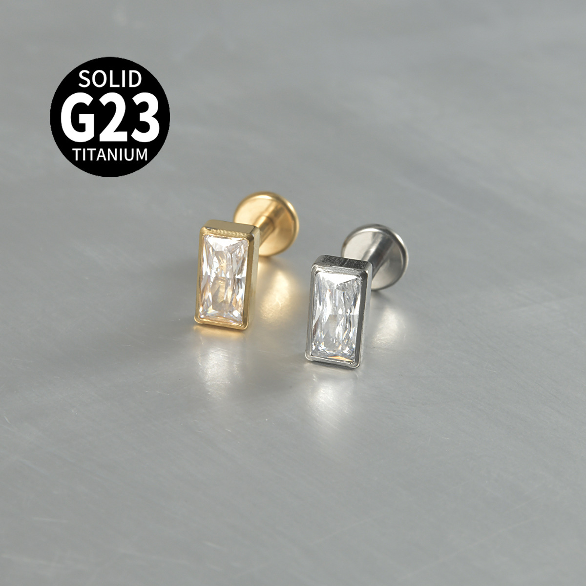 国境を越えた新型g23チタン内歯唇釘角型に白いジルコニウム耳をはめ込んだシンプルな復古チタン合金穿刺耳飾り