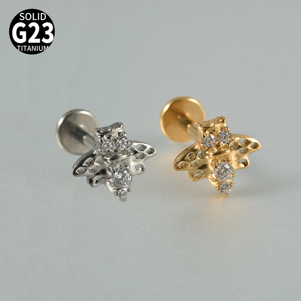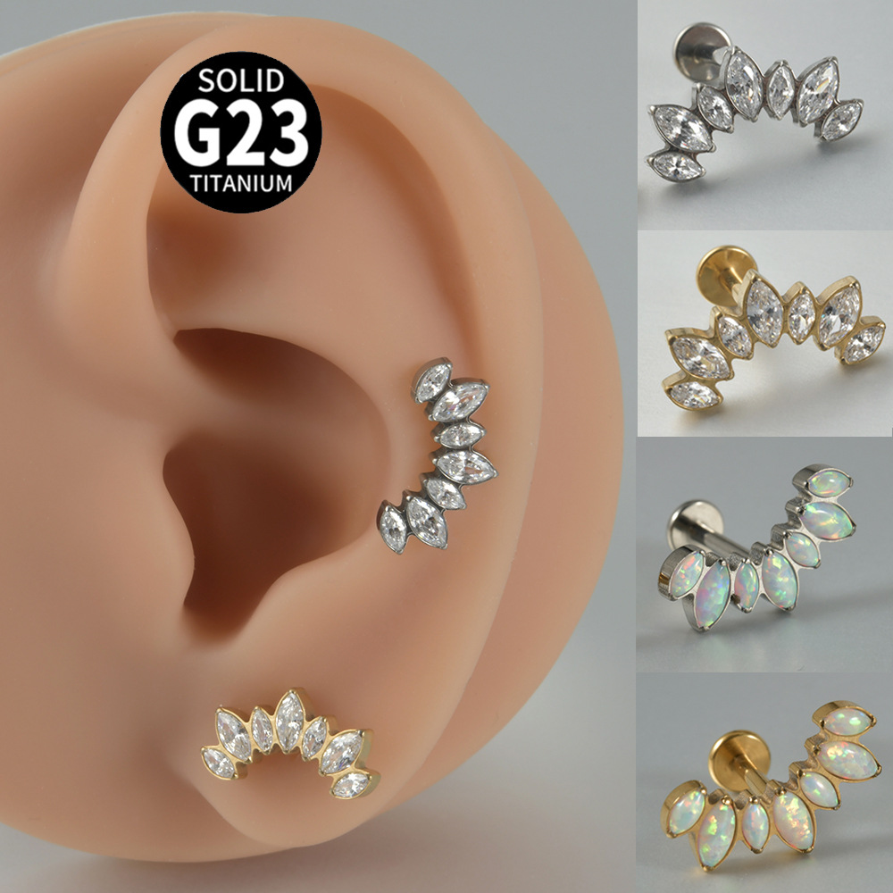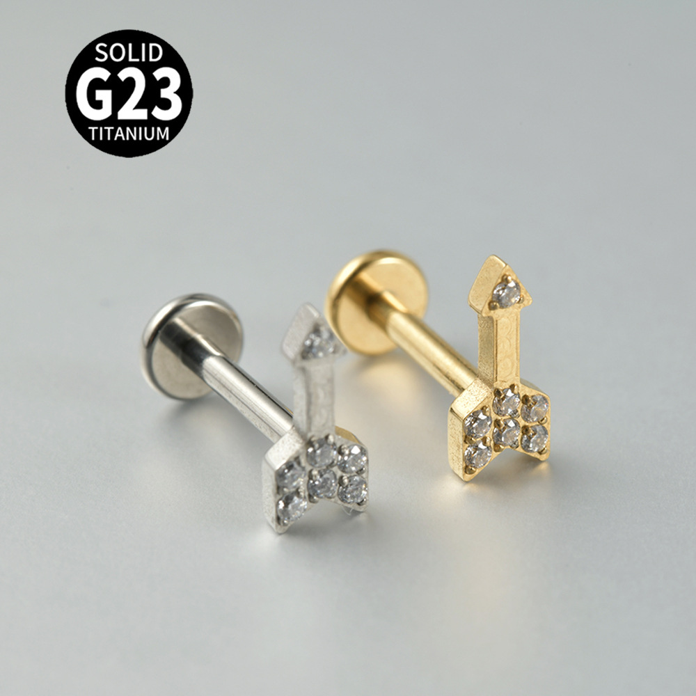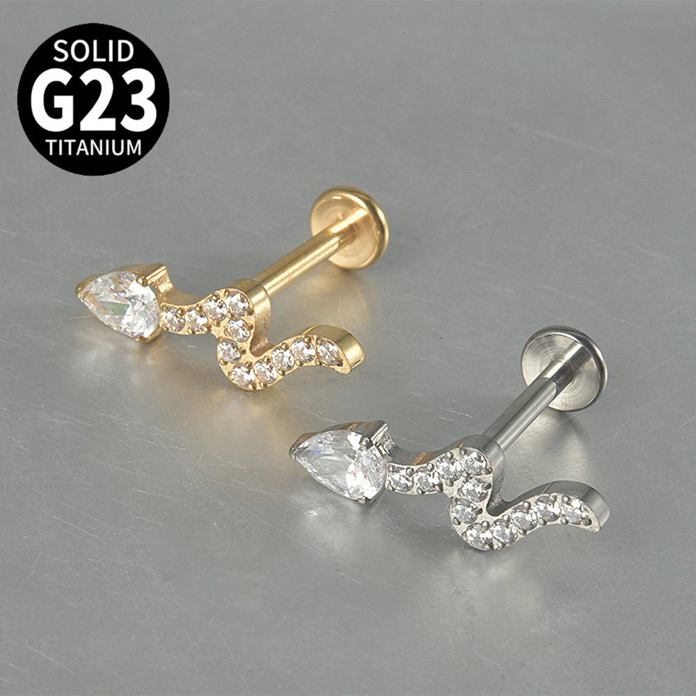 国境を越えた新型g23チタン内歯唇釘角型に白いジルコニウム耳をはめ込んだシンプルな復古チタン合金穿刺耳飾り