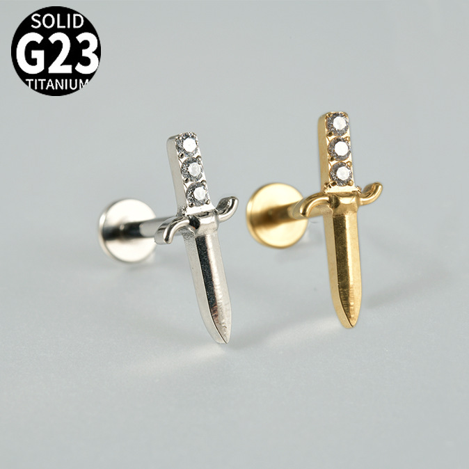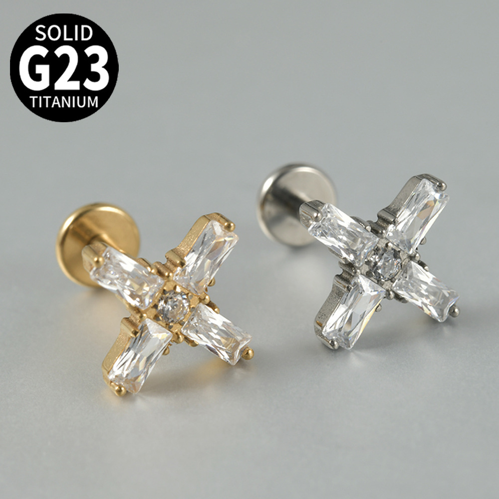 クロスボーダー穿刺g 23チタン内ねじ唇釘チタンにジルコン十字剣耳骨釘個性T型内歯イヤリング