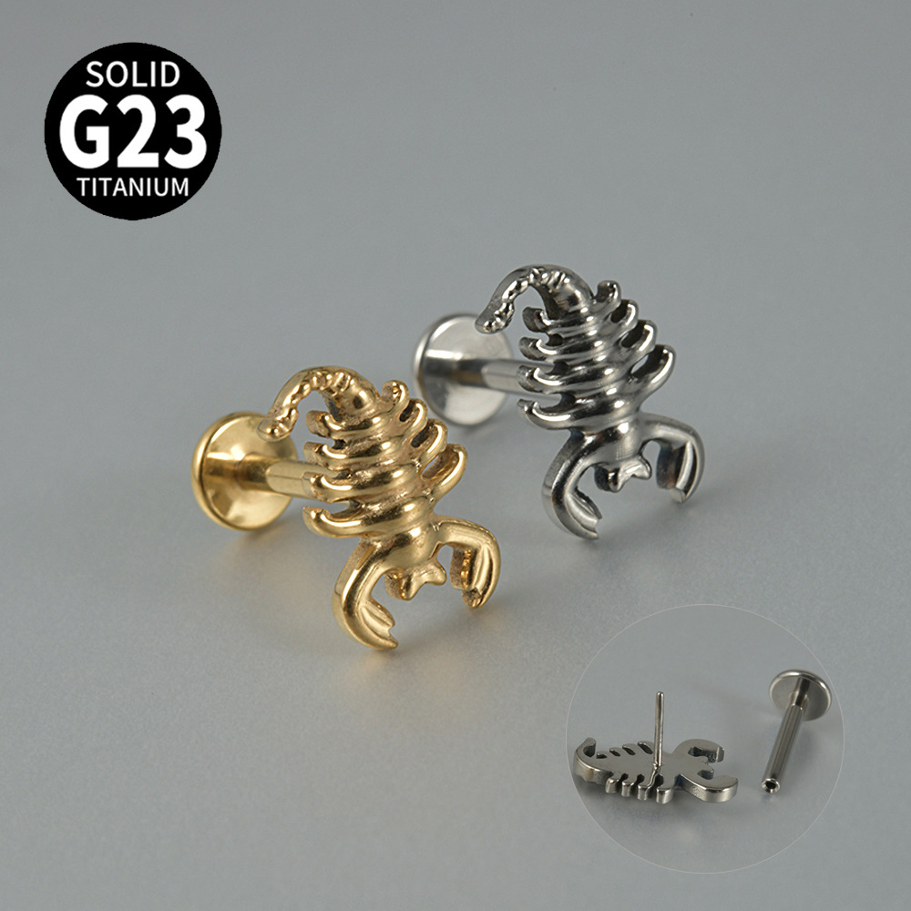 G23チタンピンリップ個性パンクサソリチタン合金ピンピアス人体穿刺基本イヤリングリップ