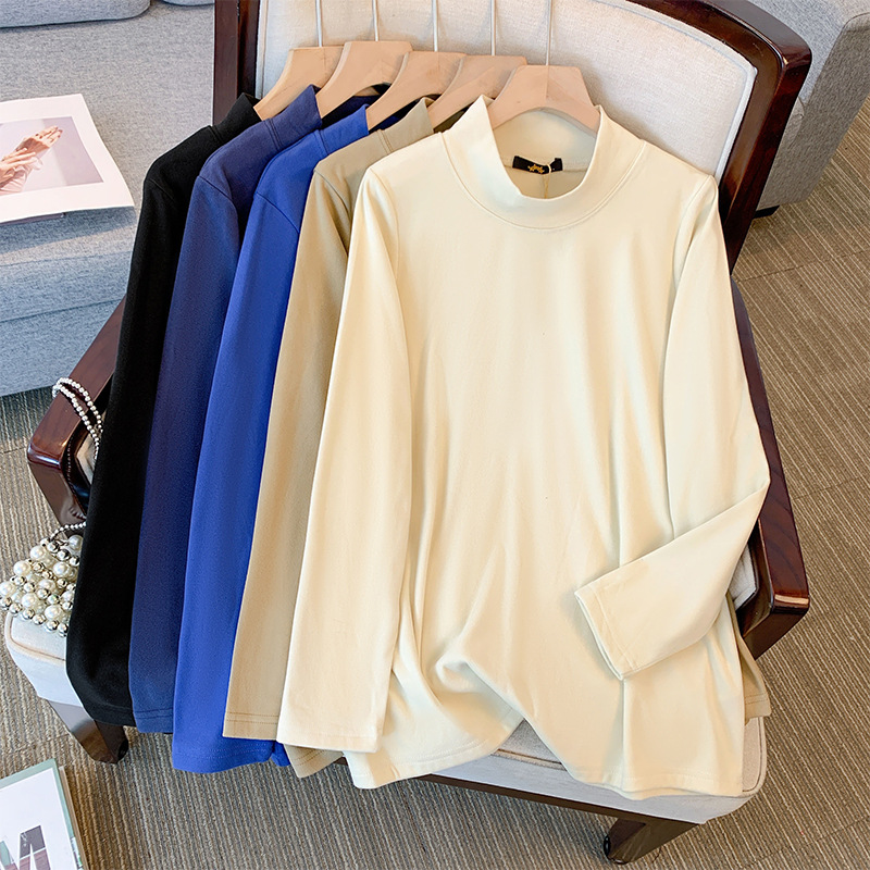 120-350斤の大きいサイズの婦人服の高襟の基礎のタイプの底のシャツの太っているMMの修身の中で長袖の上着の2024秋を掛けます。