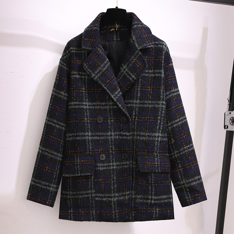 変形策の大きいサイズの婦人服の卸売りmm2024年秋冬の新型のスーツの襟の格子の毛のコートのラシャのコート