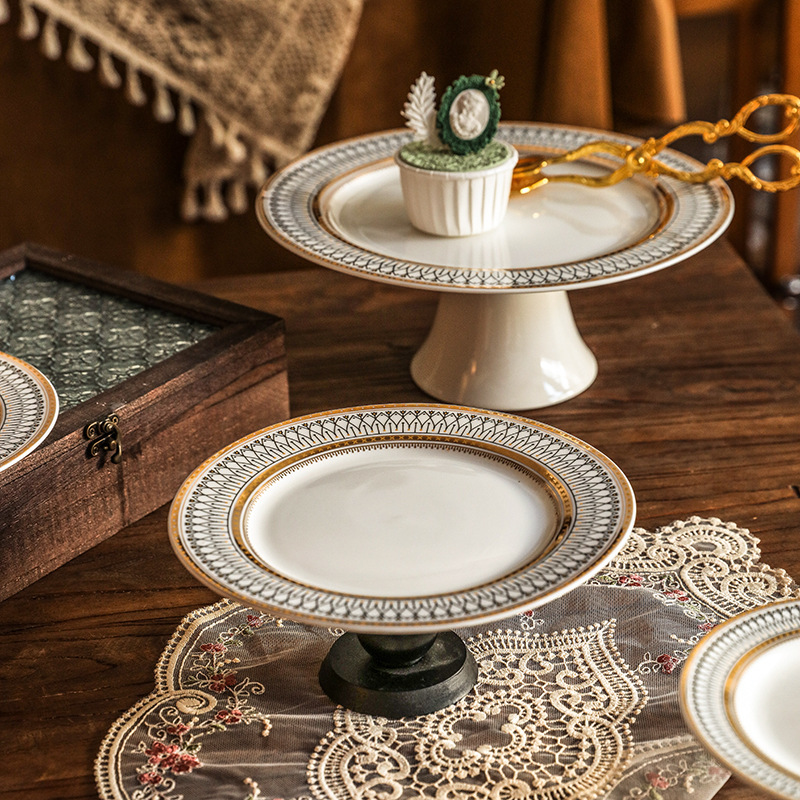 ヨーロッパ式ケーキ陶磁器皿ラップカバーパン展示棚創意円形お菓子トレースナック果物高足皿