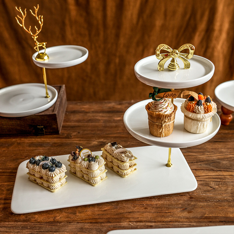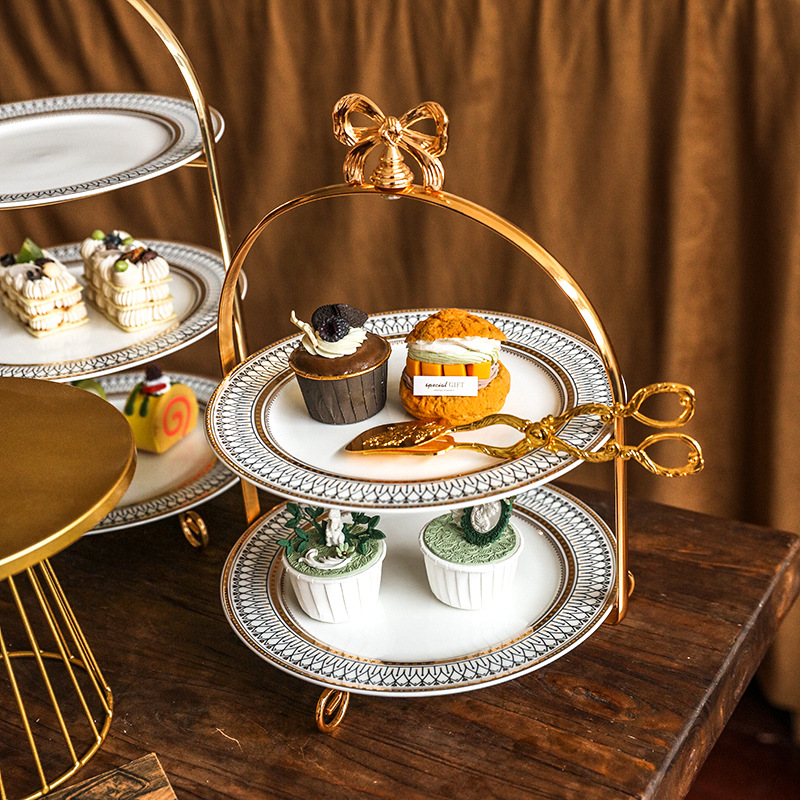 ヨーロッパ式の軽い贅沢なデザート台の展示棚の午後のお茶のお菓子棚のケーキのトレーの陶磁器の収納棚の精巧なお菓子の皿