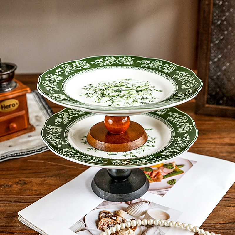 フランスの木製の高足皿陶磁器のレトロな果物の間食の収納皿のお茶の皿の客間のお茶のいくつかの玄関の装飾皿