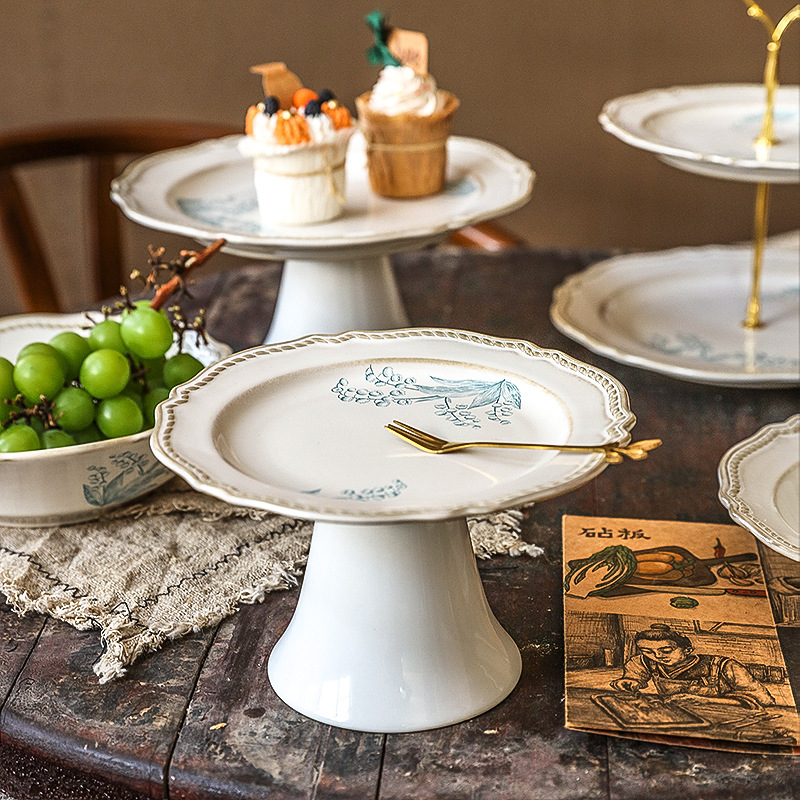 フランス式レリーフレトロなお菓子皿ケーキ高足トレーデザート台ケーキ棚果物皿冷食茶休憩台